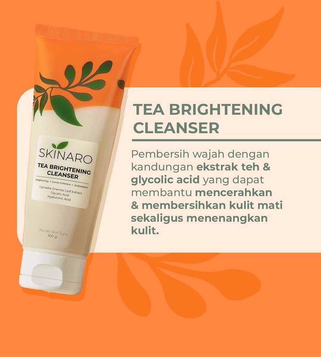 Cleanser SKINARO merupakan pembersih wajah dari SKINARO dengan kandungan Ekstrak Teh & Glycolic Acid yang dapat membantu mencerahkan dan membersihkan kulit mati sekaligus menenangkan kulit.